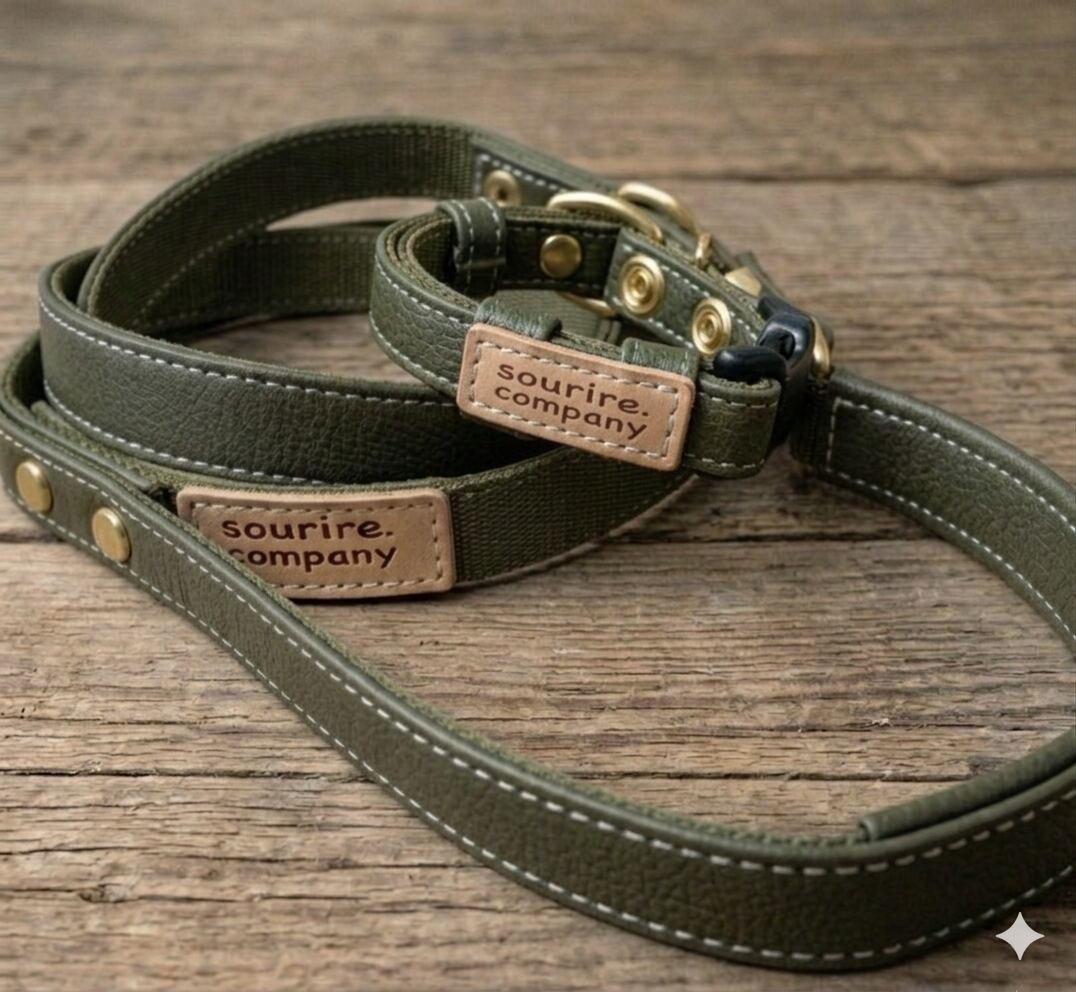エゾシカレザー首輪S & リードセット